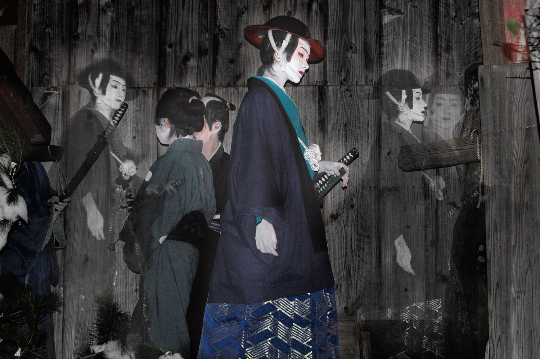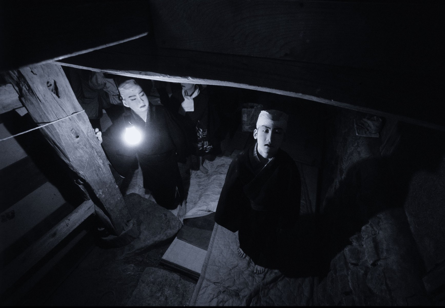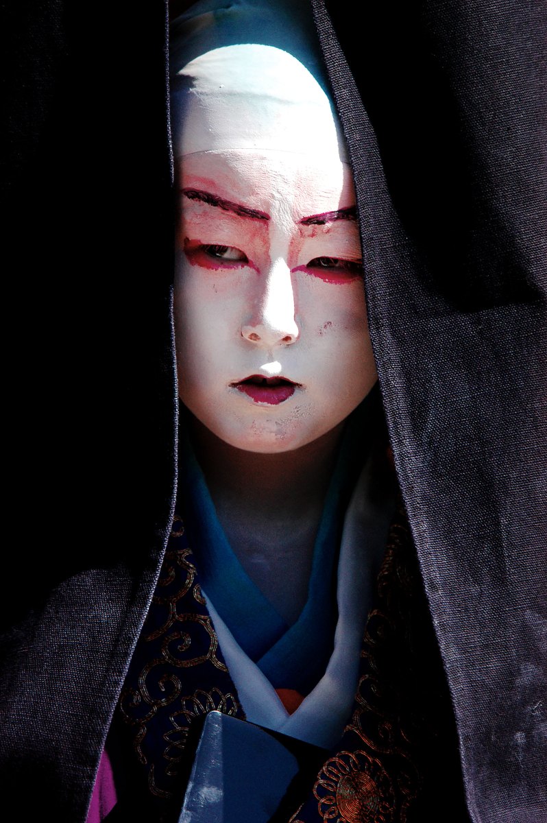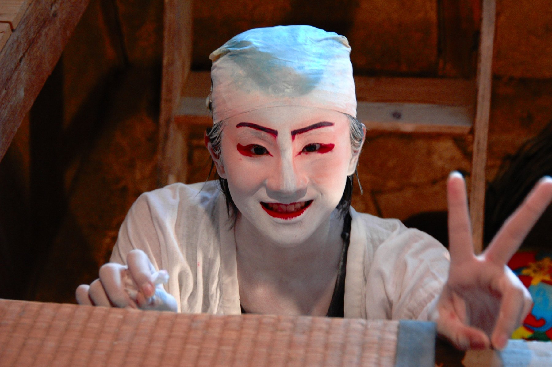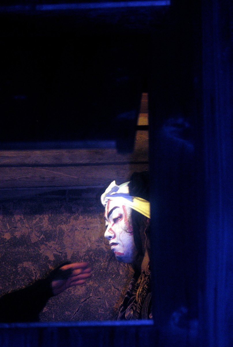 演出撮影は一切行っておりません。このように撮影を進めて行く内に、化粧をした役者の方々や舞台裏の風情に